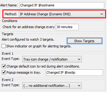 From here, you can also set up Alert Events, so you can be notified of any changes (through a tray icon popup, send an email, or any of the other alert methods supported by MultiPing).