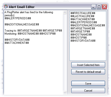 For example, if you have alert emails going to your cellphone's inbox, you may only want to have the Target Name, First instance of Failure and Last Instance of Failure in the email. If you have any more text than that, it will be too long, your cellphone will truncate it and the text is pretty much useless to you. We recognized the fact that a lot of people are using RIM devices, pagers or cellphones to receive alert email, and so now we have an editor to help you out.