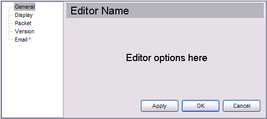 This section is a reference of the different options available in the options screen. The option screen is reachable through the Edit -> Options... menu item.